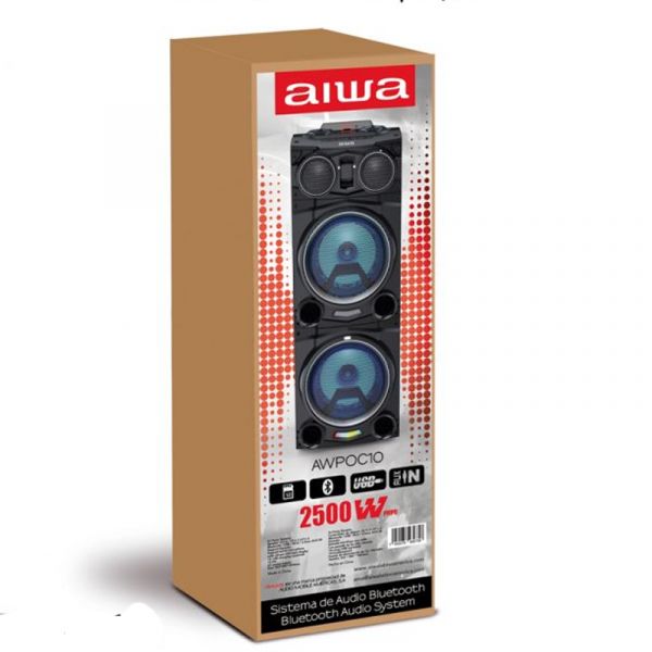 PARLANTE ACTIVO AIWA AW-POC10 MMEDIA BT USB EQ 2500W PMPO * SISTEMA DE AUDIO 2500W * REPRODUCTOR MP3 EN SD * ENTRADA AUXILIAR * ENTRADA MICRÓFONO CON FUNCIÓN DE PRIORIDAD * POTENCIA: 80 W MÁX * DIMENSIONES ALTO X ANCHO X PROF: 107 X 36,3 X 38 CM.