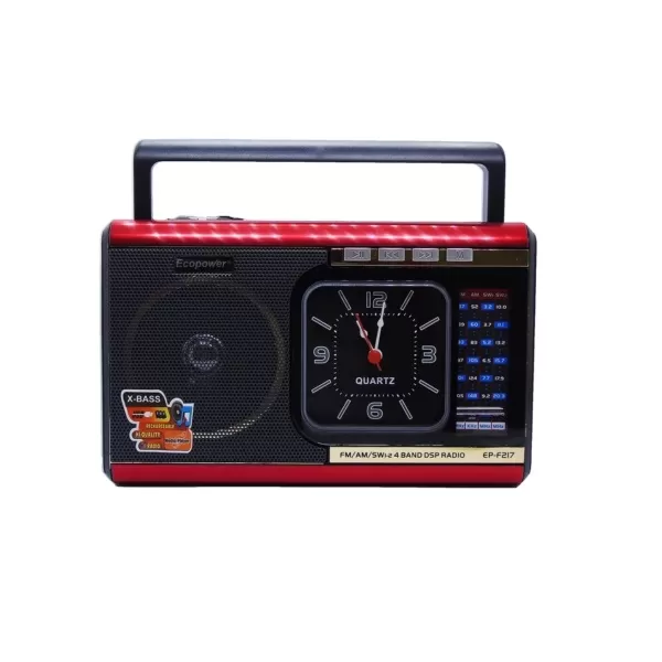 - FM/AM/SW 4 BANDAS. - ALTA SENSIBILIDAD. - CON REPRODUCTOR DE MÚSICA USB/SD-MMC. - AUDIO AUX IN. - BATERÍA RECARGABLE. - RELOJ INCORPORADO. - LINTERNA LED