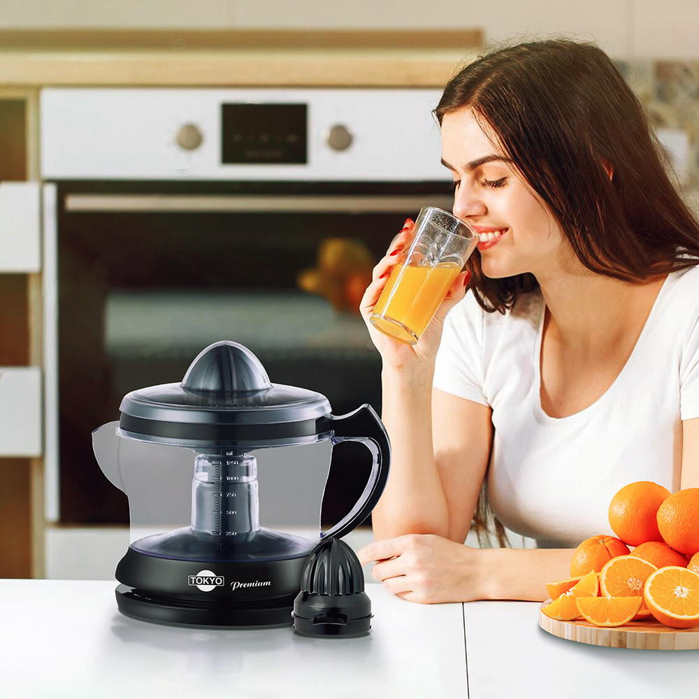 EL EXPRIMIDOR TOKYO PREMIUM CUENTA CON UN DISEÑO MODERNO QUE APORTA COMODIDAD Y ENCANTO A TU COCINA. CAPACIDAD TOTAL 1,25 ML. CAPACIDAD NETA 750 ML. POTENCIA EN W 25. ENCENDIDO AUTOMÁTICO. ROTACIÓN BI DIRECCIONAL PARA EXTRAER EL MÁXIMO ZUMO. TAPA PLÁSTICA PARA PROTECCIÓN Y SEGURIDAD. 220V-50HZ