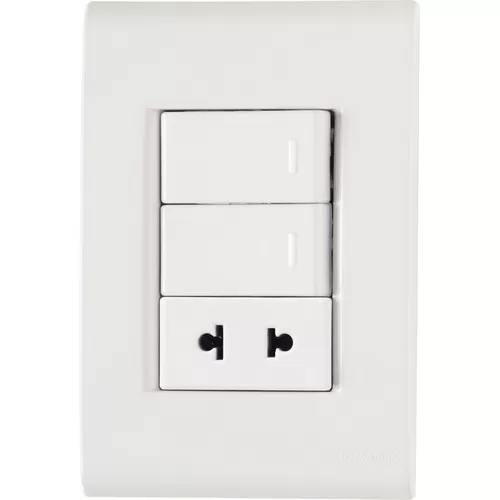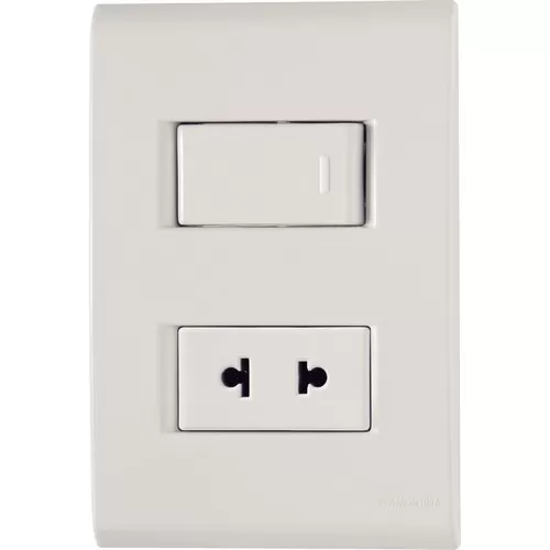 MATERIAL: TERMOPLÁSTICO SISTEMA MODULAR DE DOS PIEZAS: PLACA Y SOPORTE. ORIFICIO OBLONGO QUE FACILITA LA FIJACIÓN Y EL REGULADO DE LA PLACA A LA PARED, DEJÁNDOLA RECTA. CONTIENE: - 1 PLACA 1 MÓDULO HORIZONTAL 4X2 LIZ BLANCA - 1 TOMACORRIENTE 2P UNIVERSAL 10A-15A 250V COLOR BLANCO
