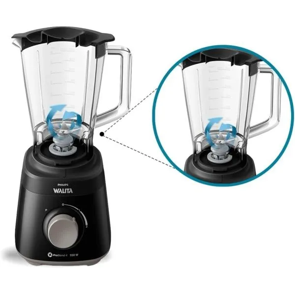 NUEVA WALITA: MÁS GRANDE, MÁS RESISTENTE, MEJORRNDOMINA CUALQUIER RECETA CON LA BATIDORA DE USO DIARIO WALITA DE PHILIPS. LA EXCLUSIVA TECNOLOGÍA PROBLEND 4 CREA LAS CONDICIONES PERFECTAS PARA UN DIFUMINADO RÁPIDO Y SUAVE. 550 W VASO DE PLÁSTICO SAN (VASO DE PLÁSTICO TRANSPARENTE) DE 1.5LLTS DOS VELOCIDADES + PULSO PROBLEND 4
