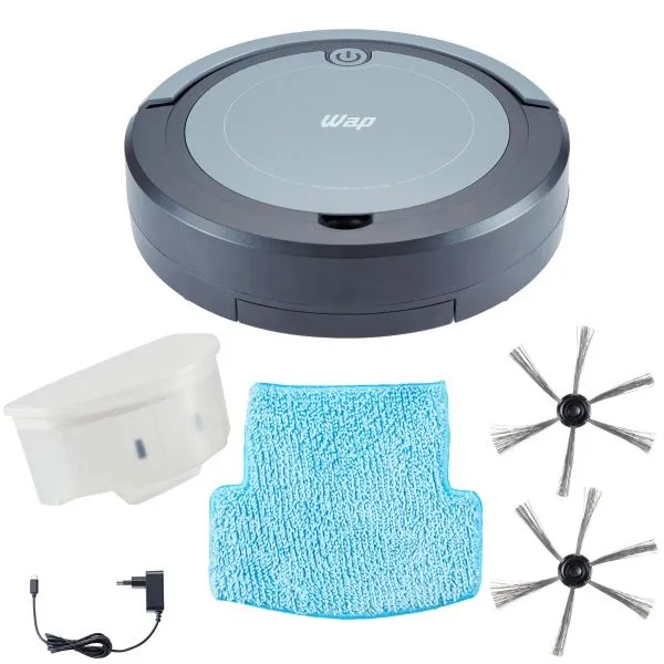 ASPIRADORAWAP ROBOT W95RN LIMPIEZA OPTIMIZADA PARA TU RUTINA. BARRE, ASPIRA Y TRAPEA SIMULTÁNEAMENTE FUNCIÓN DE LIMPIEZA CON MOPA DE MICROFIBRA. DEPÓSITO DE 250 ML DE CAPACIDAD, IDEAL PARA ASPIRAR POLVO, CABELLO, PELO DE MASCOTAS Y RESIDUOS DE ALFOMBRAS. SENSOR INFRARROJO ANTICAÍDAS Y SU SENSOR DE COLISIÓN GARANTIZAN QUE LA LIMPIEZA SEA CONTINUA.