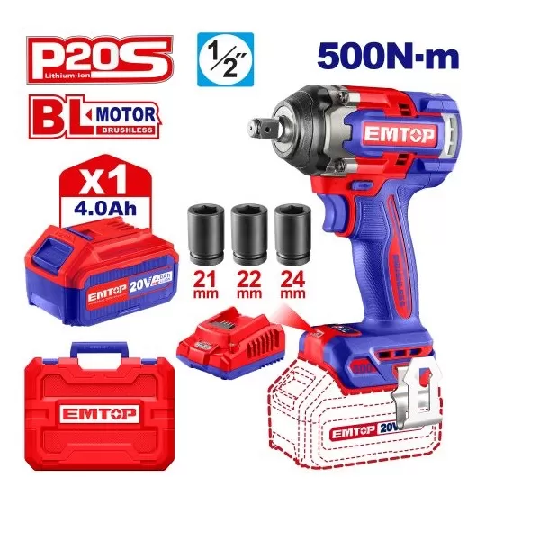 LLAVE DE IMPACTO 1/2" BL 500NM 20V 1X BAT 4.0AH C/ MALETIN