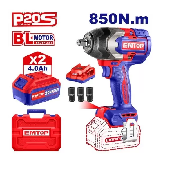 LLAVE DE IMPACTO 1/2 BL 850NM 2X BAT 4AH 20V CON MALETIN