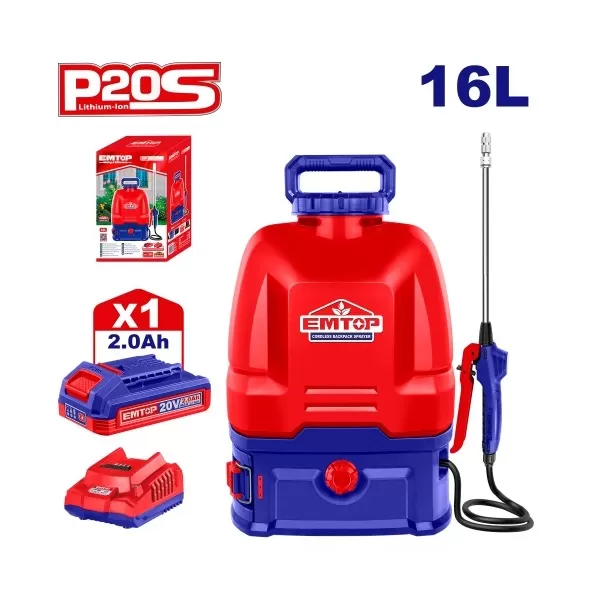 PULVERIZADOR 16L 5BAR 1X BAT 20V 2AH EMTOP