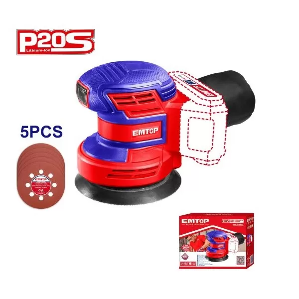 LIJADORA ROTO-ORBITAL 125MM 20V + 2X BATERIA 2AH EMTOP