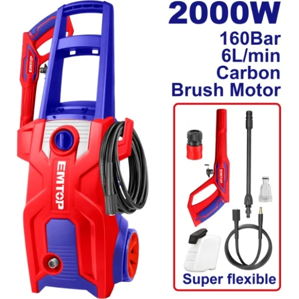 HIDROLAVADORA 2000W 160BAR CON ESPUMADOR EMTOP