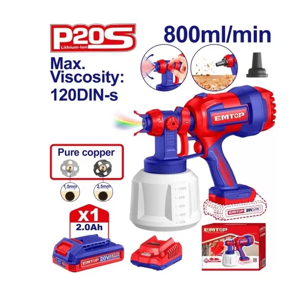 PISTOLA DE PINTAR 800ML + 1X BAT 20V 2AH EMTOP