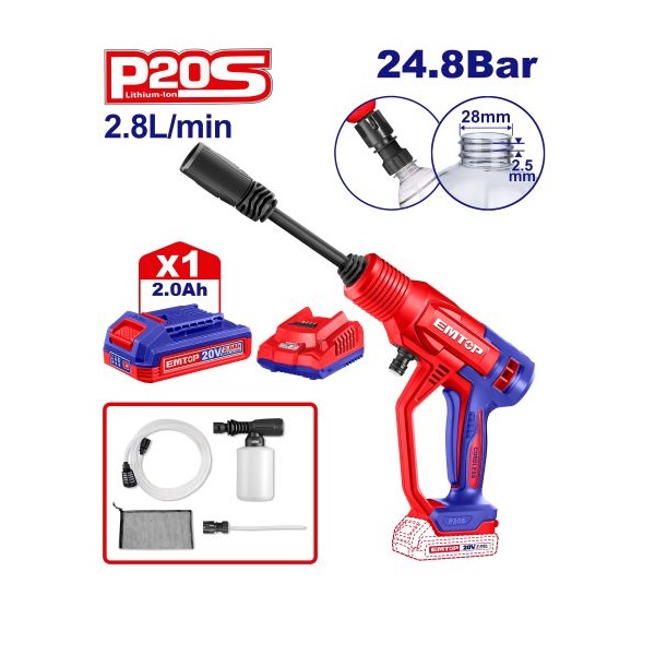 HIDROLAVADORA INALAMBRICA COMPAC 25BAR + ACC + BAT EMTOP