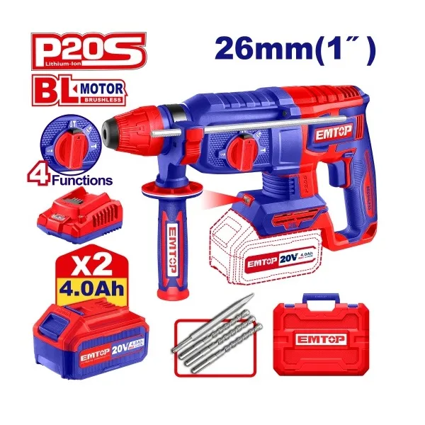 ROTOMARTILLO SDSP 2.5J 26MM BL + ACC 2X BAT 20V 4AH EMTOP